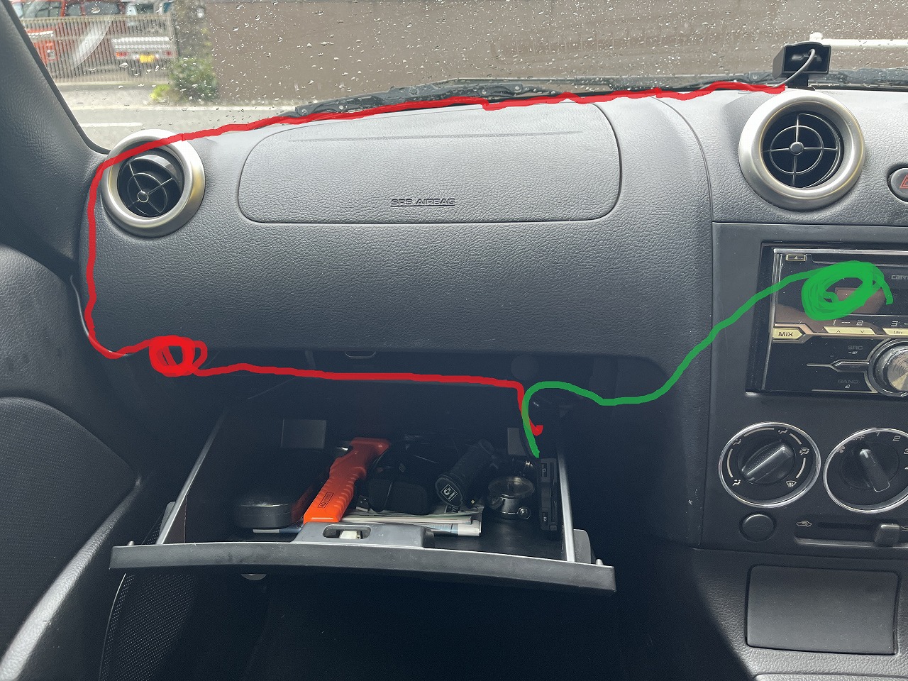アンテナ配線はダッシュボードの奥側に内張はがしとかで押し込むといい感じに隠れてくれます。